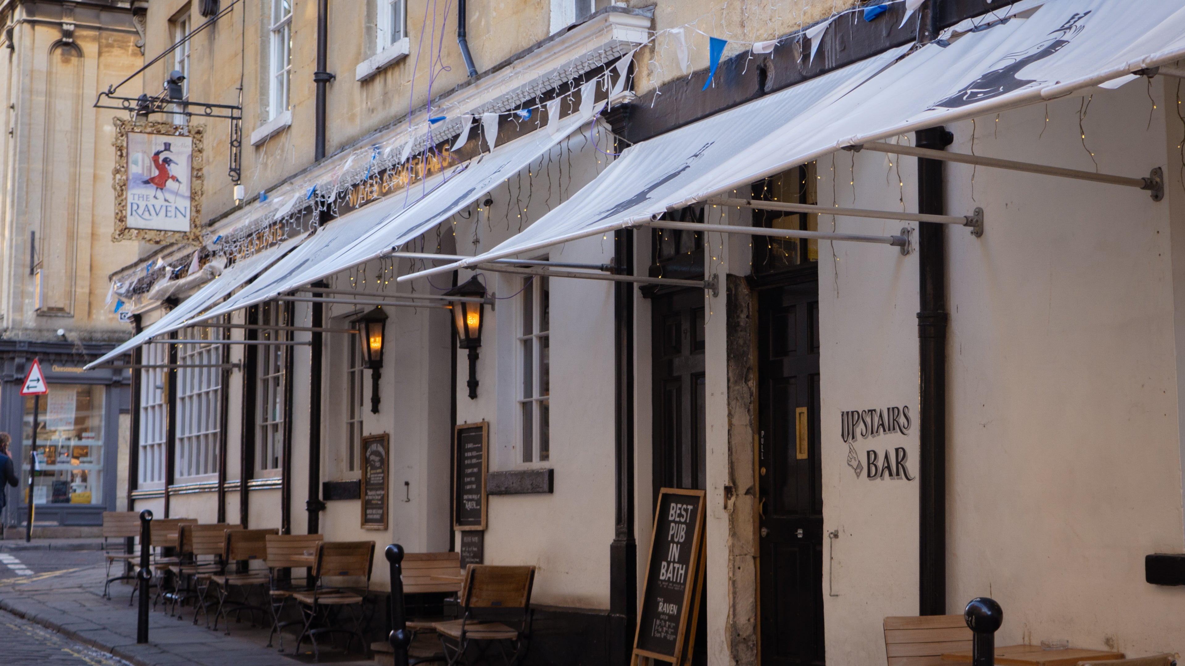 Our historic pub comprises two Georgian townhouses nestled on a quiet cobbled street in the heart of Bath, just steps away from the renowned Milsom Street. (See map for directions.) With the recent expansion into the adjoining building, The Raven now boasts four distinct bars, including a wide craft selection, and an expanded menu featuring a wider array of delectable options.